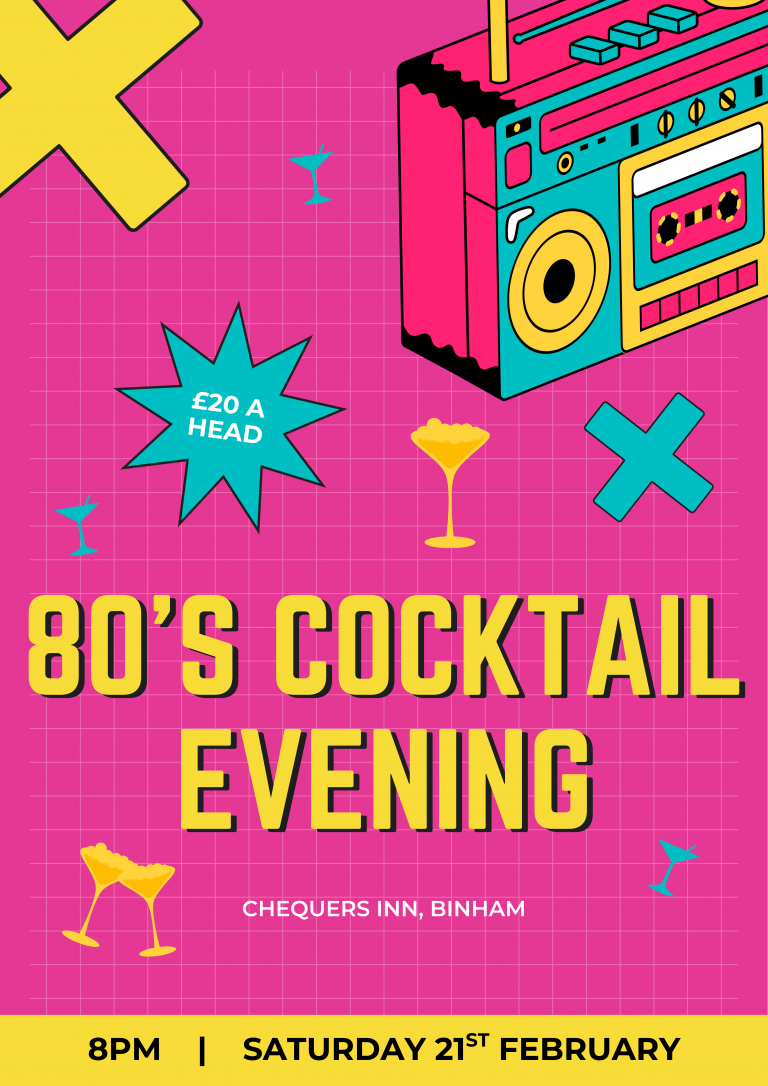 / Events / By sarah Cocktails Evening 8pm Saturday 21st February | Events Let’s take you back to the 80s with our funky cocktail evening. £20 a head. Includes nibbles. Share this news